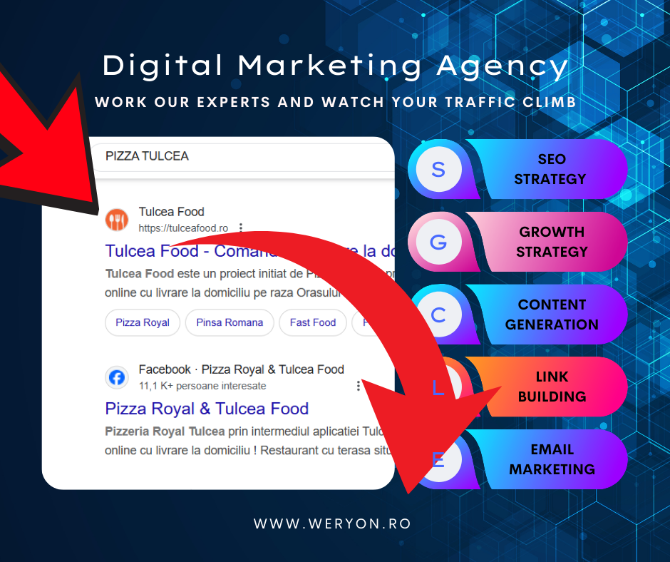 Aici intervine Weryon. Nu suntem încă o consultanță “ca toate celelalte”. Suntem specialiști în identificarea și executarea acelui “glonț de argint” care poate să te catapulteze pe prima poziție în nișa ta.